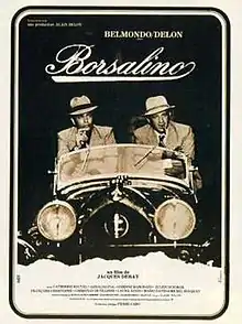 Borsalino is a 1970 French gangster film directed by Jacques Deray and starring Jean-Paul Belmondo, Alain Delon and Catherine Rouvel. It was entered into the 20th Berlin International Film Festival.[4] In 2009, Empire named it No. 19 in a poll of "The 20 Greatest Gangster Movies You've Never Seen… Probably". A sequel, Borsalino & Co., was released in 1974 with Alain Delon in the leading role. The film is based on real-life gangsters Paul Carbone and François Spirito, who collaborated with Nazi Germany during the occupation of France in World War II (though this is not mentioned in the film).[5]