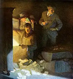 ![]() "Unhurried and without excitement, but quickly, Boston Blackie forced drawer after drawer"— N. C. Wyeth illustrated "The Price of Principle" (1914) for The American Magazine | |
