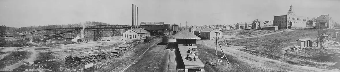 The mine, Orenda Mine #1, extracted high quality, semi-bituminous coal. A steam engine hoisted the coal to the surface. The hoist pulled the coal cars up a coal tipple that was 1,080 feet (330 m) long, 92 feet (28 m) high, and 60 feet (18 m) wide. In 1920, this was the largest coal tipple in the world. At its prime, 900 men were employed and over 3,000 tons of coal were mined daily. The company was eventually renamed to the United Coal Company and in 1918 it became the Davis Coal Company.