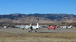 Boulder Municipal Airport (IATA: WBU, ICAO: KBDU, FAA LID: BDU) is a public airport located 3 miles (4.8 km) northeast of the central business district of Boulder, a city in Boulder County, Colorado, United States. It is owned by the City of Boulder[1] and used almost exclusively for general aviation. Its location in the foothills of the Rockies east of the continental divide gives excellent conditions for soaring, and there is extensive gliding activity. It is the base of the Soaring Society of Boulder.