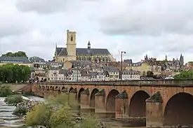 Clockwise from top: the Cathedral of Saint John in Besançon; the Théâtre de Lons-le-Saunier; the Loire Bridge and the Cathedral in Nevers; and view of Dijon