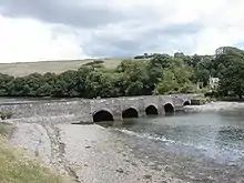 The A379 road crosses the southern portion of the creek over the so-called New Bridge. This bridge over the estuary was constructed by James Meadows Rendel in 1826. It was originally made of four masonry arches and an opening span, but this was eventually replaced with a fifth arch.[2][3]