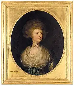 Roche continued on in the Grattan Parliament, representing Gowran from 1777 to 1783, Portarlington from 1784 to 1790, Tralee (again) from 1790 to 1798 and Old Leighlin from 1798 until the union with Great Britain in 1801.[7] From the beginning of his parliamentary career Roche ranged himself on the side of the government, and for his services he was granted a pension, appointed chamberlain to the viceregal court, and on 30 November 1782 was created a baronet. For the office of chamberlain he was thought to be "eminently qualified by his handsome figure, graceful address and ready wit, qualities which were set off by a frank, open and manly disposition."[10]