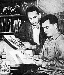 Western-style adventures involving boys in ranch settings were already present in American popular culture with the juvenile fiction of authors such as Frank V. Webster[2] and Dale Wilkins[3] as well as the 1946 MGM film, Boys' Ranch.[4] By the late 1940s, the writer-artist team of Joe Simon and Jack Kirby was enjoying the commercial success of the duo's Young Romance and Young Love romance comics titles,[5] and had formed a studio that employed artists such as Mort Meskin, Steve Ditko, John Prentice, Marvin Stein, Bruno Premiani, George Roussos, Bill Draut, and others.[5] In 1950, Simon & Kirby launched two new titles: Black Magic, for the Crestwood Publications imprint Prize Comics, and Boys' Ranch for Harvey Comics (which had previously published two short-lived Simon–Kirby titles, Stuntman and the Boy Explorers, in 1946).[5]