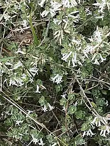 Brachyloma daphnoides, commonly known as daphne heath,[2] is a flowering plant in the family Ericaceae. It is a small upright shrub with dull grey-green leaves and white tubular flowers.
