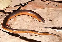 Brachymeles bicolor, common name two-colored short-legged skink,[2] is a species of skink endemic to Luzon, the Philippines. It is widely distributed through the island, at elevations of 250 to 850 m above sea level. However, its population is declining due to deforestation, and hence the species is classified as least concern by the IUCN.[1][3]