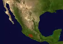 Brachypelma auratum (also called Mexican flame knee) is a tarantula endemic to the regions of Guerrero and Michoacán in Mexico. In appearance it is reminiscent of the quintessential Mexican red-kneed spider, Brachypelma smithi, albeit darker and with more discrete red striations on the patella. The form of these red markings have earned the spider its common name, the flame knee. Due to the species' similarities to B. smithi, it was not considered a distinct species until 1992.[2][3] It has been found living communally with a small frog known as Eleutherodactylus occidentalis[4][5][6]