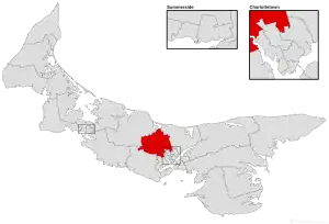 The riding consists of rural communities north and north-west of Charlottetown, including Hunter River, Oyster Bed Bridge, and Warren Grove.