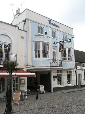 The Romsey branch, situated at 14–20 Bell Street, Romsey, Hampshire, was opened in a building formerly known as the Dolphin Inn and expanded by buying up adjoining properties in the 1960s and 1970s. A Major expansion which doubled the floor area and included the installation of an escalator and provision of two new restaurants was complete in 2003.[2] The building is reportedly haunted by the ghost of a white or blue lady who has been sighted in the older parts of the store.[3] This branch sells a range of products including clothing, cosmetics, jewellery, homeware and luggage.