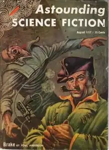 "Brake" is a science fiction short story by American writer Poul Anderson, first published in 1957 in Astounding Science Fiction and reprinted in the collections Beyond the Beyond (1969) and The Psychotechnic League (1981). As a component of the Psychotechnic League future history / alternate history, "Brake" takes place in 2270, as the civilization built up in the aftermath of the 1958 Third World War is being torn between mutually antagonistic factions, on the verge of collapsing into "the day of genocide and the night of ignorance and tyranny".