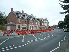 The suburb has a historical association with the civil parish of Brampton in North East Derbyshire district, which is still outside the town.[1][2] The civil parish includes the villages of Old Brampton (from which the suburb derives its name), Wadshelf and Cutthorpe which is a small village about 4 miles (6.4 km) north-west of Chesterfield with a village school, a butcher's shop and a small post office/grocery store, three public houses and two historic halls; the main road straggles through the village for three miles, reaching the Grange at its highest point, with commanding views all around.[3]