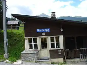 Brandegg is a request stop railway station in the municipality of Grindelwald in the Swiss canton of Bern. The station is served by the Wengernalpbahn (WAB), whose trains operate from Grindelwald to Kleine Scheidegg.[1][2]