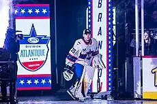 Bussi had a very successful first full season with the Providence Bruins. As a rookie, he finished the 2022-23 season sixth in the league among goalies in goals against average (GAA) with 2.40 and second in the league in save percentage, with .924. Bussi's play got him named to the 2023 AHL All-Star Game, representing the Atlantic Division.[3] On April 12, 2023, Bussi was recalled to the NHL squad for an emergency recall.[4] Although he dressed as the backup, he did not play, and was sent back down shortly after. Bussi was named to the AHL's All Rookie team at season's end.[5]