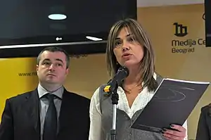 Nevistić in February 2010 emceeing Srbijagas CEO Dušan Bajatović's announcement of donating his YugoRosGaz managing board funds to charity.