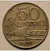 - ↑ The 10 and 20 Cruzeiro coins issued in aluminum with the date of 1965 had the same obverse and dimensions as the 1 and 2 Cruzeiro coins issued between 1942 and 1955, coins issued in pink nickel or aluminum bronze. In turn, the 50 cruzeiros coin issued in cupronickel was issued in such a small size that it was similar to the worthless 10 centavos coins issued in pink nickel and aluminum-bronze between 1942 and 1955 and in worthless 10 centavos coins issued in aluminum from 1956 to 1961, as well as in the worthless aluminum-bronze coin issued in 1956 with a value of 50 centavos.