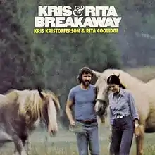 The couple’s first album, Full Moon, had been a chart topping success, going gold and receiving a Grammy for Best Country Vocal Performance by a Duo or Group for the track "From the Bottle to the Bottom.” However, Kristofferson’s commercial stock had dropped with 1974’s Spooky Lady Sideshow, and Breakaway would not be as successful as the pair’s debut LP, making the country Top 5 but just scraping the bottom of the Billboard Top 100. A&M and Monument agreed to take turns releasing the duo’s LPs, and since it was Monument’s turn, longtime Kristofferson producer Fred Foster was back at the helm, but, as with Full Moon, the emphasis was on an easy listening MOR sound aimed mainly at Rita’s lustrous vocal prowess.[4] Although it was not the hit Full Moon had been, AllMusic’s William Rulhmann opines, “In any case, the album was a worthy successor to Full Moon. The Kristofferson/Coolidge albums were very different from each artist's solo albums, though somewhat closer to Coolidge's because they consisted largely of cover songs and the keys were set to her voice, with Kristofferson singing at the upper edge of his narrow range. This forced him to work harder and sing more, which made him a better vocalist than he usually was on his own albums.”