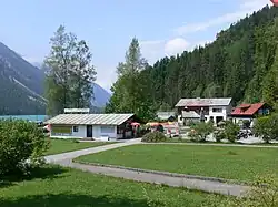 Breitenwang is located in the Reutte basin adjacent to the city on the Plansee and is closely interwoven with this community infrastructural. The cluster village consists of the districts Breitenwang, Lähn, Mühl, Neumühl and Plansee. Part of the Plansee belongs to the municipality, in which the Archbach springs from the Plansee.