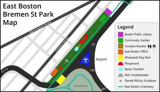 - ↑ "East Boston's First Dog Park Opens on Bremen Street – East Boston Times-Free Press". eastietimes.com. Retrieved 2021-01-11.