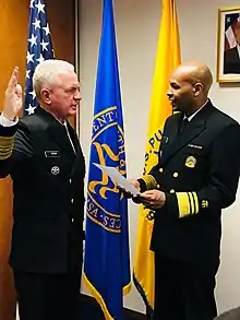 President Donald Trump nominated Giroir for appointment as a commissioned officer, and appointment to the rank of admiral in the U.S. Public Health Service Commissioned Corps, while serving as the assistant secretary for health, on May 25, 2017.[46] In August 2017, the Senate committee on Health, Education, Labor and Pensions held up Giroir's confirmation,[47] due to skepticism over his testimony that he would support women's health programs.[47][48] The Senate returned his nomination back to the President on January 3, 2018, without action.[46] He was renominated on January 8, 2018,[49] and confirmed via voice vote on February 7, 2018.[48][49]