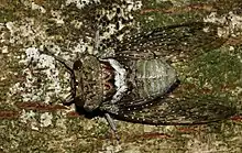 Brevisana brevis, known as the shrill thorntree cicada,[1] is a cicada found in Africa and is the loudest insect on record. It has been recorded producing sounds with pressure levels of 106.7 decibels at a distance of 50 cm.[2]