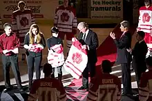Burke also has four children from a previous marriage, including Patrick, a former scout for the Philadelphia Flyers[33] and as of 2015 a director in the NHL's Department of Player Safety.[34] Burke is a strong supporter of gay rights and attended the 2009 Toronto Gay Pride Parade with his son Brendan Burke, who was gay.[35] On February 5, 2010, Brendan died at age 21 from injuries suffered in a car accident in Indiana.[36] Brian Burke also participated in the 2010 and 2011 Toronto Gay Pride parades. On March 4, 2012, Burke and his son Patrick launched the You Can Play project in honor of Brendan, which is targeted at ending homophobia in sports.[37]