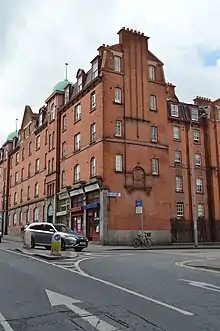The most prominent feature on the street is the Dublin Corporation flats, dating from around 1900.[10] The more decorative structures on the street were built by the Iveagh Trust but the more austere neighbors of the Dublin Corporation flat scheme began slightly earlier.[11]