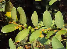 Bridelia stipularis is a perennial evergreen climber grows over hedges and bushes and sometimes on bigger trees.[2] It is native to Southeast Asia, southern China, and the Indian subcontinent.[1][3] Used as medicines in Malaysia and the Philippines. Bridelia stipularis, as other Bridelia species, used as food plants by the larvae of some Lepidoptera species including Endoclita malabaricus.