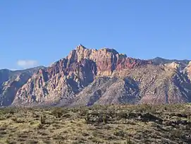 Bridge Mountain is a mountain located in the Spring Mountain range of southern Nevada. It is located on land managed by the United States Bureau of Land Management as the Red Rock Canyon National Conservation Area,[4] part of the Rainbow Mountain Wilderness. Bridge Mountain is named for the natural feature of a bridge-like natural arch of sandstone near the summit.[5]