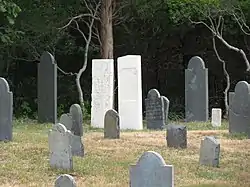 The Bridge Road Cemetery is an historic cemetery on Bridge Road in Eastham, Massachusetts. It is a roughly 1.4-acre (0.57 ha) rectangular parcel on the west side of Bridge Road. The cemetery was established in 1720, and marks the location of the town's second meeting house. It was the second cemetery established in the town, after the Cove Burying Ground. The cemetery was in use from 1720 until the late 1880s; its earliest dated grave is marked 1754. Most of the burials took place between 1770 (when burials ended at Cove Burying Ground) and about 1830, when a new cemetery was laid out further north. There is a single 20th-century burial, dated 1933.[2]