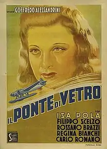 Bridge of Glass (Italian: Il ponte di vetro) is a 1940 Italian drama film directed by Goffredo Alessandrini and starring Isa Pola, Rossano Brazzi and Filippo Scelzo.[1] It was shot at the Scalera Studios in Rome.