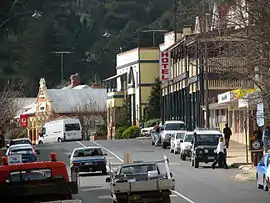 From then until about 1885, many buildings including the primary school (1870), post office, new police station (1880) and two hotels were constructed, many of which are still standing today. In 1885, the Bridgetown Agricultural Society was formed and local farmers produced sheep, cattle, dairy products, timber, fruit and nuts. The building boom in Western Australia during the gold boom of the 1890s saw an increased demand for sawn timber, and numerous mills opened in the Bridgetown area.[4] The coming of the railway in 1898 enabled quick access to markets for the many orchardists and helped establish the beginning of a tourist industry.[5]