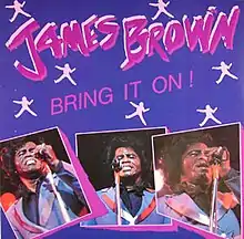 Bring It On! is the 52nd studio album by American musician James Brown. The album belongs in the Funk/Soul genre and was released in 1983, by Churchill/ Augusta Sound in US.[1] It was released in an LP format as a vinyl album. The songs were recorded with Jimmy Nola, Arthur Dickson, and J.B,'s Internationals.
