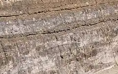 The average thickness is around 60 metres.[3] It was deposited in a swampy alluvial plain with winding streams that formed sporadic beds of sandstone. The shale is dark when unweathered just like the Ashfield Shale. The shale is usually a typical olive-green colour when weathered. Alloyed coal bands and lenses and iron oxide concretions have been observed in the shale. The shale is quarried in many western suburbs of Sydney for brick and miscellaneous ceramic manufacture.[4]