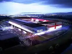 The stadium was intended to have a capacity of 30,000 spectators. HOK, the architects that designed Wembley Stadium, Cardiff's Millennium Stadium and Arsenal F.C.'s Emirates Stadium, was retained to design the stadium.[2] As a preliminary part of the planning process, public consultations took place in December 2008 and February 2009.[3]