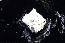 In 2005, three overlapping craters cropped out from the ice at Mount Sourabaya, with another crater 1 kilometre (0.62 mi) farther east.[30] During April-July 2016, an eruption at Mount Sourabaya emplaced two lava flows and produced ash emissions that were visible from satellites[16] and led to the issuance of volcanic ash advisories.[39] Temperature anomalies indicative of fumaroles are visible from satellites[40] and are centered on the crater of Mount Sourabaya.[41] Helicopter-assisted ascents to the summit of Mount Sourabaya have found hot ground.[42] Ice is melted in the proximity of active craters[23] but otherwise volcanic impacts on the ice cover are minimal.[31]