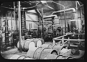 On average, 60 to 100 men were employed to distill approximately 20000 tons of wood from the adjoining state forest.[1]