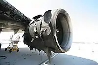 The aircraft, which suffered moderate damage to a section of its forward fuselage as of a result of the vigorous fire, was repaired and returned to commercial passenger service in March 2016.[1][2][3] The fire was caused by metal fatigue in a compressor disk, leading to detachment of the main fuel supply line.