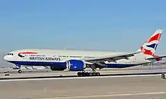 The aircraft involved in the incident was a Boeing 777-236ER[lower-alpha 1], s/n 29320, registered as G-VIIO. At the time of the incident, the aircraft was 16 years old; it had been delivered new to British Airways on 26 January 1999.[15]
