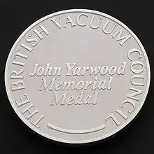 Currently the British Vacuum Council awards the Senior Prize, which is associated with the John Yarwood Memorial Medal. The prize is awarded for distinguished contributions to British scientific research in the fields of vacuum science, surface science, thin films or any related topic in which vacuum science and engineering play an important role. Prize winners may be invited to deliver the BVC Annual Address at an appropriate occasion.