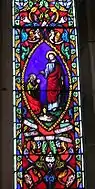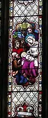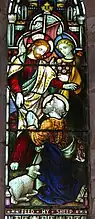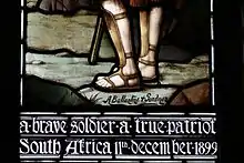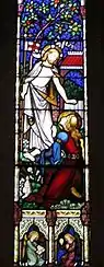 - ↑ The example illustrated commemorates a 21-year-old soldier who died in the Great War. His brothers, who also died aged 17 and 19, are commemorated in the adjacent window of Christ with the Children.