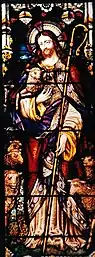 In the years immediately following World War I, many of these windows were created by the more conservative studios as memorials to fallen soldiers. Hence there are countless two-light windows of St George and St Michael and even more lancets of the Good Shepherd gathering his lost sheep to the fold. These are the last product of the second Golden Age of stained glass window production.[7]