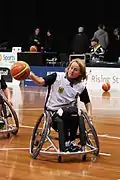 Britt Tuna was born on 4 April 1963.[1] She played wheelchair basketball for RSV Lahn-Dill, and the German national team which won the European Wheelchair Basketball Championship in 1987.[2] At the 1988 Summer Paralympics in Seoul, Tuna was considered to be the strongest wheelchair basketball player in her 1.0-point class. The German team went through the tournament undefeated until the final match, which they lost to the United States, 38–31.[3] Tuna was bitter about the defeat, which she blamed on a tactical error by the German coach.[4] She later conceded, "So habe ihr diese Niederlage noch über Jahre nachgehangen" ("I indulged in this defeat for many years").[4]