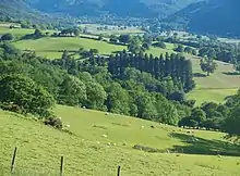 Bro Garmon is a sparsely populated [1] community in Conwy County Borough, in Wales. It is located on the eastern side of the Conwy Valley, stretching from north east of Llanrwst to just west of Pentrefoelas, and includes the villages of Capel Garmon, Glan Conwy, Melin-y-Coed, Nebo, Oaklands, Rhydlanfair and Pentre-tafarn-y-fedw. Moel Seisiog, on the eastern boundary, rises to a height of 1,535 feet (468 m). The main settlement, Capel Garmon, lies 2.4 miles (3.9 km) east of Betws-y-Coed, 5.2 miles (8.4 km) north west of Pentrefoelas, 4.4 miles (7.1 km) south of Llanrwst and 15.7 miles (25.3 km) south of Conwy. At the 2001 census the community had a population of 648,[2] increasing slightly at the 2011 census to 652.[3]