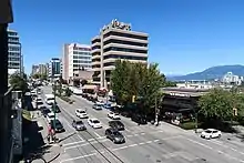 Broadway is a major east–west thoroughfare in the city of Vancouver, British Columbia, Canada. In Vancouver's numbered avenue grid system, it runs in place of a 9th Avenue, between 8th and 10th. The street has six lanes for most of its course. Portions of the street carry the British Columbia Highway 7 designation.[2]