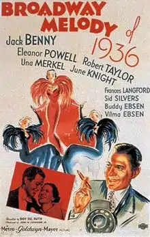 Broadway Melody of 1936 is a musical film released by Metro-Goldwyn-Mayer in 1935.[2] In New York, the film opened at the Capitol Theatre, the site of many prestigious MGM premieres. It was a follow-up of sorts to the successful The Broadway Melody, which had been released in 1929, although, there is no story connection with the earlier film beyond the title and some music.