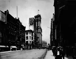 ![]() The Broadway Theatre on the left in 1912, playing Hanky Panky | |