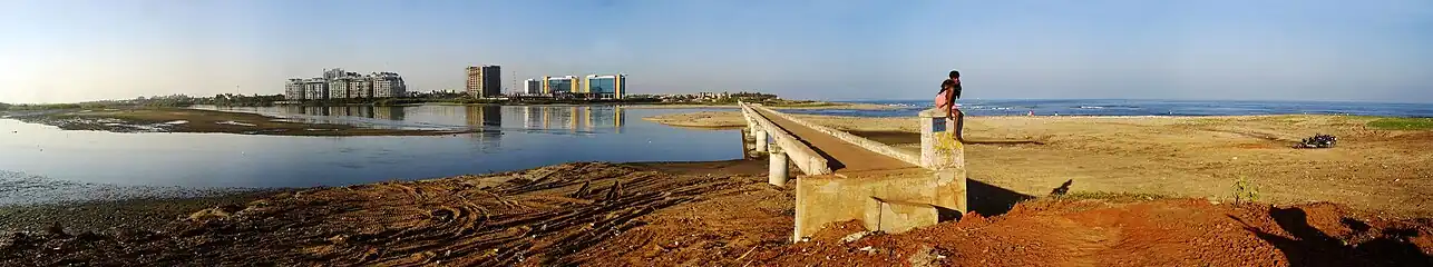 Broken Bridge is a bridge to nowhere, located in Chennai, South India. During the year 1977, the bridge partly collapsed due to strong currents of the river and has never been repaired. The bridge spans across the Adyar estuary, bordering the backend of the Theosophical Society. It was built in the late 18th century, with its construction completed in 1772. The bridge was initially built to connect Fort St. George in Chennai with the neighborhood of Saidapet across the Adyar River. Over time, the bridge fell into disuse and disrepair, earning its popular name "Broken Bridge. (However, please note that specific renovations or repairs to the bridge may have been carried out at different times since its original construction). It was built to facilitate the movement of fishermen from Santhome to Elliot's Beach over the mouth of the Adyar river.
