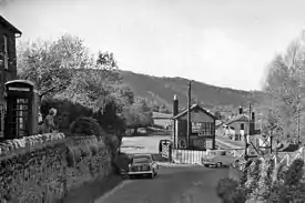 The station features a level crossing with wooden gates at the south end where the railway crosses the B4301 road. Passenger trains now currently use the crossing which had been brought into use as part of the railway's extension to Abergwili Junction.