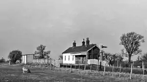 Brookland was the first station on the Lydd Railway Company's New Romney branch line. It opened to traffic on 7 December 1881.[2] The station was ½ mile from Brookland village, one of the larger settlements on Romney Marsh, and an area well known for games and wrestling as well as smuggling. It was located on the north side of the A259 Straight Lane which links the villages of Brenzett and Brookland; a small ground frame shed controlled the level crossing staffed by a resident signal-porter who also sold tickets.[3] Brookland was once an impressive station boasting two platforms, with the main station building on the down side and a small wooden waiting shelter on the up side. A passing loop was also provided, but this was removed in 1921.[4]