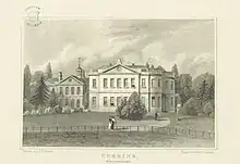 The Gaussen family arrived in 1786, when Peter Gaussen bought the Brookmans estate for his son Samuel.[7] In 1838 the Gaussens demolished the Gubbins manor house (he owned both houses and was jealous that Gobbins was better than his other, Brookmans).[8][6]